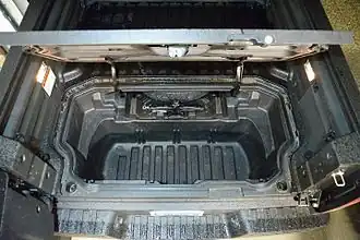 • A non-painted and textured steel-reinforced sheet molding composite bed—developed by Continental Structural Plastics—[7][28] that is reportedly stronger than its competitor's[29]