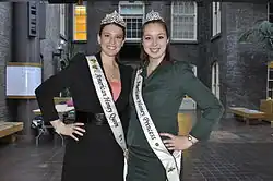 The American Honey Queen Program is a national competition program sponsored by the American Beekeeping Federation (ABF), with its main priorities being the promotion of the world of beekeeping, to increase the national honey consumption, and educate the public about the value of honey bees.[2] The American Beekeeping Federation is a national organization that supports the interests of all beekeepers and individuals associated with the beekeeping industry in the United States.[3] A Honey Queen and Princess are crowned each year, serving as representatives and salespersons of both the beekeeping and honey industries in the U.S. The Honey Queen and Princess aim to educate the public spreading their experience and knowledge of the beekeeping and honey industry, focusing on issues such as how the U.S. agriculture depends on a healthy honey bee population as far as the pollination of the nation's crops. The Honey Queen and Princess also educate the public on the benefits of honey —how honey is a healthy substitute for sugar, how it extends the shelf life of baked products, and how it adds a unique quality such as flavor or texture to other products.[4]