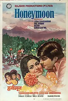 Honeymoon is a 1973 Bollywood comedy film directed by Hiren Nag. The film stars Leena Chandavarkar and Anil Dhawan in lead roles.[1]