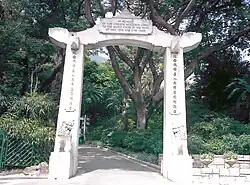 Located at the southern entrance to the gardens, at Upper Albert Road, sits the Chinese War Memorial, which is dedicated to the Chinese who died assisting the Allies during World War I and World War II. The inscription on the lintel reads: "In Memory of the Chinese who died loyal to the Allied cause in the Wars of 1914–1918 and 1939–1945". A granite arch in the shape of a paifang was erected in 1928. Reference to the Second World War was added later.[8]