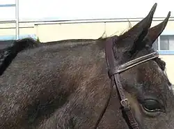 A newly clipped bridle path. Note that ears of horse are also trimmed.