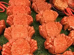 The horsehair crab (Erimacrus isenbeckii) is a species of crab which is found mainly in the Northwest Pacific, around the Hokkaido coast in the Sea of Okhotsk and the Western Bering Sea and is an important commercial species used in Japanese cuisine.[1][2] It is also known by its Japanese name, kegani (ケガニ "hairy crab").