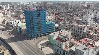 The Hotel Deauville is a historic hotel in Centro Habana located at Calle Galiano 1 on a corner with the Malecón promenade, and overlooking the Bay of Havana.[1] The hotel was constructed as a casino hotel in 1957 by a consortium owned by American mobster Santo Trafficante Jr.