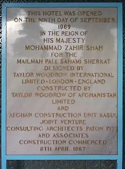 Construction started on the Hotel Inter-Continental Hotel Kabul in April 1967 and it opened on 9 September 1969. It was developed by the InterContinental Hotels division of Pan Am and built by UK-based Taylor Woodrow construction.