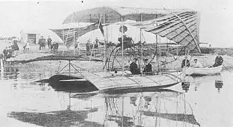 The biplane was launched on 3 April 1909 but it turned turtle and sank due to an accident.[1] Recovered and tested again, The Times reported in April 1909 that a further trial was abandoned when the gearing between the engine and the propellers failed.[2] In May 1909 it did manage to skim the water at speed of 12 knots but failed to overcome the drag in the design and failed to fly.[1]