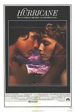 Hurricane is a 1979 American romantic adventure film featuring Mia Farrow and Jason Robards, produced by Dino De Laurentiis with Lorenzo Semple Jr. (who also wrote the screenplay), and directed by Jan Troell. It is a loose remake of John Ford's 1937 film The Hurricane, itself based on the 1936 novel by James Norman Hall and Charles Nordhoff.