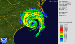 Weather radar animation of Hurricane Bertha rainbands at landfall