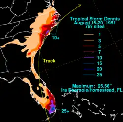 - ^ a b David M. Roth (2008). "Hurricane Dennis – August 15-20, 1981". Weather Prediction Center. Retrieved June 14, 2017.