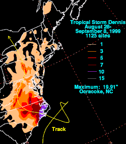5. ^ Jack L. Beven (September 4, 1999). Tropical Storm Dennis Discussion Number 43. National Hurricane Center (Report). Miami, Florida: National Oceanic and Atmospheric Administration. Retrieved December 20, 2013.