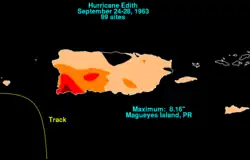- ^ a b John V. Vaiksnoras (October 11, 1963). The Affects of Hurricane "Edith" to Puerto Rico and Virgin Islands September 26–27, 1963. United States Weather Bureau (Report). National Hurricane Center. p. 2. Retrieved August 21, 2013.