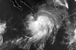 ![]() Hurricane Hernan at peak intensity near landfall in southwest Mexico on October 2 | |