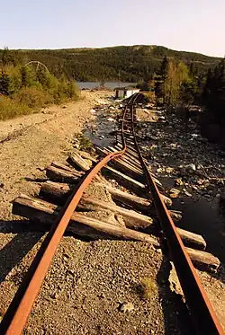 Roughly 150 communities were temporarily isolated as all roads leading to them were severely damaged or washed out.[30] Overall damage to roadways was regarded as "colossal" by Tom Hedderson, the minister for emergency preparedness.[36] A 100 ft (30 m) section of the Trans-Canada Highway in Terra Nova National Park was severely eroded, leaving a large ravine behind and disconnecting the main population of Newfoundland from the rest of the island. A bridge washout on the Burin Peninsula left 20,000 people cut off from the rest of the island.[30][31] Public infrastructure losses were estimated in excess of $100 million, mainly attributed to roadways.[37] On Random Island, a man was killed when his driveway collapsed from flooding and he was swept out to sea.[31]