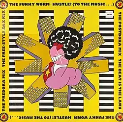 "Hustle! (To the Music...)" is a Disco-themed Dance/House/Pop single produced by Mark Brydon and co-written with Carl Munson, Julie Stewart, and Richard "Parrot" Barratt under the British project act The Funky Worm. The single reached #13 in the UK Singles Chart,[1] but it was more successful in the United States, eventually reaching number one on Billboard's Hot Dance Club Play on December 17, 1988.[2] It would also be the only charted single in America for the group as they continued to chart in the United Kingdom. The song also featured two different music videos, both featuring singer Julie Stewart, one as the host of a Children's program with two farming assistants, another featured clips of various dances and cartoons.