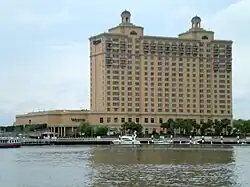 Totaling approximately 2,000 acres (8.1 km2), Hutchinson Island was targeted as the site for a public-private partnership to build a convention center and hotel.[5] Chatham County voters approved spending $63 million in public special-purpose local-option sales tax money for the trade center and $10 million for the road system on the island. The Savannah International Trade and Convention Center and the Westin Savannah Harbor Resort were built.[6][5] In addition, the state of Georgia provided $18 million, and former land owner CSX railroad donated 25 acres (100,000 m2) for the public trade center.[5]
