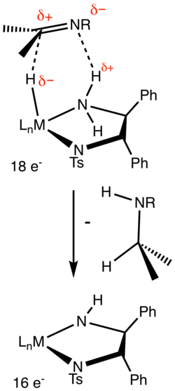 Outer sphere mechanism for metal-catalyzed transfer hydrogenation of an imine.)