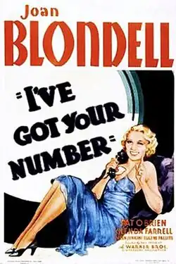 I've Got Your Number is a 1934 American Pre-Code romantic comedy film directed by Ray Enright and starring Joan Blondell, Pat O'Brien, Allen Jenkins and Glenda Farrell.[1][2][3] The film was released by Warner Bros. on February 24, 1934. Two telephone repairmen romance a pair of blondes with many adventures. The supporting cast features Eugene Pallette.