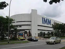 The International Merchandising Mart Mall[1] (usually referred to as IMM Mall) is an outlet mall owned by CapitaLand Mall Trust, located in Jurong East, Singapore. It is Singapore’s largest outlet mall with more than 100 outlet stores, offering up to 80% discount all year round.[2] Opened in 1991, it is a five-storey mall with 961,281 square feet (89,305.9 m2) of retail space. Besides retail stores, it also houses offices and warehouses for storage, which is advantageous in terms of cost efficiency to some retailers.[3] The mall has capacity for 235 retail outlets and 430 non-retail outlets. Anchor tenants of the mall include Giant Hypermarket, Daiso department store and Best Denki.