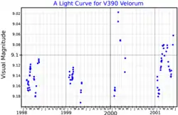 A visual band light curve for V390 Velorum, adapted from Mass et al. (2003)[3]