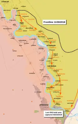 - ^ Leith Aboufadel (2019-01-01). "SDF reach gates of ISIS stronghold east of the Euphrates – map". Archived from the original on 2019-01-02. Retrieved 2019-01-02.