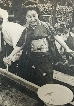Iida Chōko (Japanese: 飯田 蝶子; April 15, 1897 – December 26, 1972) was a Japanese actress. Her real name was Shigehara Tefu.[1] She played working class women and grandmothers,[2] and appeared in more than 300 films. Her husband was cameraman Shigehara Hideo.
