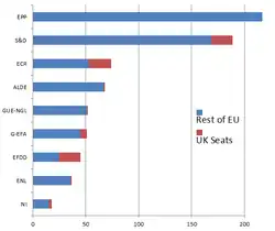 Similarly, a majority of the UK's representatives sat with right-leaning groups, namely the European Conservatives and Reformists and the Europe of Freedom and Direct Democracy, both of which were built around, and led by members of, the British Conservative Party and UKIP. The Progressive Alliance of Socialists and Democrats also lost its members from the UK's Labour Party, but on the whole would be left strengthened by the greater loss to the right, and thus able to form majorities without seeking support from the (conservative) European People's Party.[7]