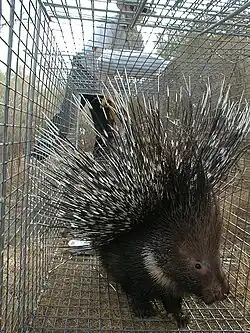 Indian crested porcupine in a trap