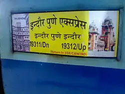 - ^ "19311/Pune–Indore Express". India Rail Info.