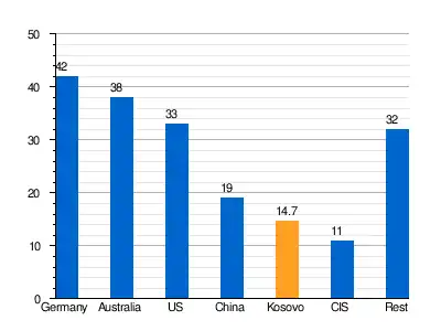 - ^ "Investing in Kosovo 2011" (PDF). p. 13. Archived from the original (PDF) on 4 November 2013. Retrieved 27 February 2014.