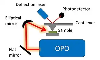 - ^ a b c d Dazzi; Prater, C. B.; Hu, Q.; Chase, D. B.; Rabolt, J. F.; Marcott, C. (2012). "AFM-IR: combining atomic force microscopy and infrared spectroscopy for nanoscale chemical characterization". Applied Spectroscopy. 66 (12): 1365–1384. Bibcode:2012ApSpe..66.1365D. doi:10.1366/12-06804. PMID 23231899.