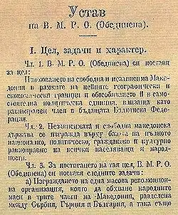 - ^ Bulgarian: Вътрешна македонска революционна организация - обединена, romanized: Vătrešna makedonska revoljucionna organizacija - Obedinena; Macedonian: Внатрешна македонска револуционерна организација - обединета, romanized: Vnatrešna makedonska revolucionerna organizacija - obedineta)