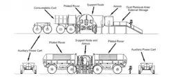 The plan would utilize multiple lunar surface rendezvous (LSR), where vehicles would meet on the surface for refueling, rather than Apollo's Lunar orbit rendezvous (LOR). NASA's Jet Propulsion Laboratory proposed a LSR for Apollo but it was quickly turned down to the amount of technology, such as In situ resource utilization, that would need to be developed.[2]