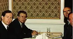 From 1988 the League stepped up functions as a way of bringing in new members and raising funds. The July 1988 Annual Dinner took place in Dartmouth House, Mayfair, with Guests-of-Honour being Crown Prince Alexander of Yugoslavia and the Duke of St. Albans. Jacqueline, Lady Killearn hosted a reception at her home in Harley Street, London, in April 1989, for members and their guests.[23] 1990 was a busy year for functions, with a House of Lords Dinner in March[24] and over 100 members and guests at a summer reception, hosted by Conservative MP Neil Hamilton, in Westminster Hall on 17 July. Lord Sudeley and Gregory Lauder-Frost represented the League (at their own expense) at a major fund-raising dinner in New York City on 15 June 1990, which had been organised by New York member David Evans, and the Reverend (now Canon) Dr. Kenneth Gunn-Walberg.[25] On 8–9 December that year Lauder-Frost also represented the League at the European Monarchist Conference in Warsaw, Poland, which attracted over 350 delegates from Europe, and several from North America.[26][27][28][29] He returned immediately for the League's Christmas reception at London's Lansdowne Club on the 10th. A league seminar followed on 26 January 1991 addressed by Dimitri Dostoevsky, a great-grandson of the author. This event was filmed for a BBC documentary[30] entitled Dostoevsky's Travels, broadcast on BBC2 TV on 9 October 1991. Under Don Foreman's auspices, a new South-Eastern Counties branch was inaugurated in September 1991, and Lauder-Frost organised another dinner at the House of Lords on 30 November 1992, with the Guest-of-Honour being HRH Prince Shwebomin of Burma.[31] The functions strategy, coupled with publications, was shown to be paying off by Spring 1992, when it was announced that in the previous three months alone 95 new members had joined.[32]