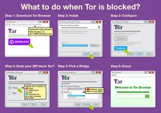 - Tor anonymity network: A more advanced tool such as the Tor anonymity network routes encrypted traffic through multiple servers to make the source and destination of this traffic less traceable. In some cases, Tor can be used to avoid censorship, especially when it is configured to use traffic obfuscation techniques.[5]