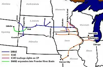 - ^ "DM&E Announces Merger With Canadian Pacific Railway" (PDF) (Press release). dmerail.com. September 4, 2007. Archived from the original (PDF) on October 6, 2007. Retrieved September 4, 2007.
