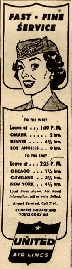 As World War II ended (1945), and America's greatest generation returned home from the war, Iowa City was growing quickly. Beginning in 1946, United Air Lines committed to making Iowa City one of its primary Midwestern stops with daily flights to and from Chicago and Omaha. The United States Post Office, of course, continued to use the Iowa City Airport as its eastern Iowa hub for its ever-increasing volume of airmail.