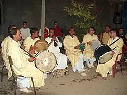They are known for their spiritual performances, which generally comprise group recitation of religious psalms, accompanied by the use of the oboe ghaita (similar to the mizmar or zurna) and polyrhythmic percussion.