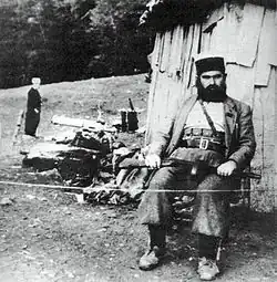 Apart from geo-political interests, some Great powers were reluctant to include more Ottoman Balkan Albanian inhabited lands into Albania due to concerns that it would be the only Muslim dominated state in Europe.[10] Russo-French proposals were for a truncated Albania based on central Albania with a mainly Muslim population, which was also supported by Serbia and Greece who considered that only Muslims could be Albanians.[11] Within the scope of the Balkan Wars (1912–13) the Northern Epirote movement arose in southern Albania amongst the Orthodox population calling for unification with Greece who also opposed living in an Albania under leaders composed of Muslim Albanians.[12][13][14] Fighting broke out in southern Albania between Greek irregulars and Muslim Albanians who opposed the Northern Epirot movement.[15] Between 1912–13 and 1916 some areas of southern Albania were temporarily under Greek military administration and Muslims in those areas were subject to Greek law.[16] For example, in 1913 the Greek administration appointed muftis in the settlements of Përmet, Libohovë, Gjirokastër, Delvinë, Leskovik, Frashër and Tepelenë and all received government salaries.[17]