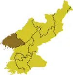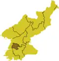 • Hwanggŭmp'yŏng (황금평 Hwanggeumpyeong; 黃金坪) (Sindo County) — formerly Hwangch'op'yŏng (황초평 Hwangchopyeong; 黃草坪)