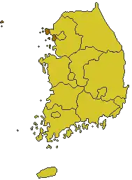 | 15 | Baengnyeongdo | 백령도 | 白翎島 | Ongjin County | 51.086 | 19.724 |