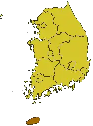 | 9 | Ulleungdo | 울릉도 | 鬱陵島 | Ulleung County | 72.861 | 28.132 |