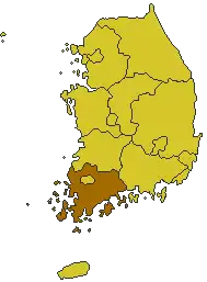 | 3 | Jindo | 진도 | 珍島 | Jindo County | 374.981 | 144.781 |