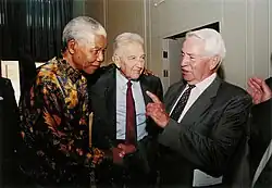Former South African President Nelson Mandela with Israeli President Ezer Weizmann and Syd Cohen of the Israeli Air Force, 1999.