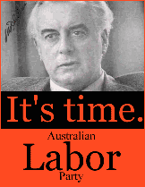 It's Time was a political campaign run by the Australian Labor Party (ALP) under Gough Whitlam during the 1972 federal election in Australia. Campaigning on the perceived need for change after 23 years of conservative (Liberal-Country Party coalition) government, Labor put forward a raft of major policy proposals, accompanied by a television advertising campaign of prominent celebrities singing a jingle entitled It's Time.[1] It was ultimately successful, as Labor picked up eight seats and won a majority. This was the first time Labor had been in government since it lost the 1949 federal election to the Liberal Party.[2]