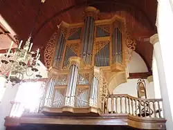The workshop operated as Jürgen Ahrend Orgelbau from 1972.[3][4] Ahrend was also commissioned to restore the organs and their tuning for the Arp Schnitger organs in the Martinikerk in Groningen (including the main organ in the west gallery), the organ of St. Jacobi in Hamburg and organ of St. Ludgeri in Norden.[3] In Hamburg, the organ pipes had been removed from the organ case for safety in 1942. The church was destroyed by bombing. In the restored church, Ahrend used the historic pipes in a new case to revive the sound he had in mind.[5]