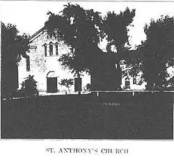 When Pelamourgues first arrived at St. Anthony's, the church building was used for various community functions as it was the largest structure in the small town. He resided in the gallery of the church, which was separated from the rest of the space by rough boards. Eventually a residence was created for him on the main floor of the building.
