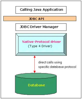 The JDBC type 4 driver, also known as the Direct to Database Pure Java Driver, is a database driver implementation that converts JDBC calls directly into a vendor-specific database protocol.