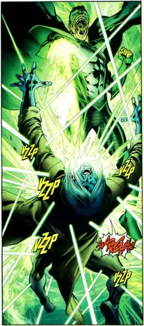 In the fourth volume of Green Lantern, Kyle Rayner is whisked away by a yellow lantern ring during the Sinestro Corps attack on Oa.[7] Chance and a select few Green Lanterns are sent to Qward to rescue Rayner and Hal Jordan. While on Qward, the Lanterns discover that Rayner has been possessed by Parallax, making him as murderous as Jordan was. Chance confronts Parallax, who forces him to confront his repressed memories of his abusive childhood before killing him and crushing his ring.[8]