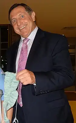 Martin taught at the Department of Physical Education at Algonquin College for seven years, during which time he coached the Rockland Nats and the Hawkesbury Hawks junior hockey teams.[2][3] Martin runs the Jacques Martin Hockey School for children age 7 – 17 in Rigaud, Quebec.[4] One of his daughters, Angela, is a public school teacher in Ottawa.[5] His other daughter, Nathalee, works for the cheesemaker St-Albert.[6]