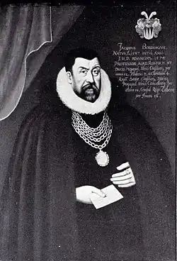 Jakob Bording the younger (27 January 1547 – 21 February 1616) was professor for feudal law at the University of Rostock, chancellor for the Duke of Mecklenburg, advisor to the King of Denmark and, during the final part of his life, Mayor of Lübeck.[1][2]