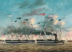 - U.S. Ships of the Line "Delaware" and "North Carolina" and Frigates "Brandywine" and "Constellation, c. 1835–1860, collection of the New York Historical Society.[14]